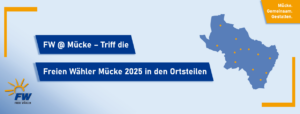 - FW @ Mücke – Triff die Freien Wähler Mücke in den OrtsteilenUnser Motto ist es Mücke gemeinsam zu gestalten – jetzt und in Zukunft. Und wie könnten wir dieses Vorhaben besser umsetzten als mit Euch gemeinsam. Aus diesem Grund wollen wir im Laufe dieses Jahres, dem Jahr vor der Kommunalwahl 2026, mit den Bürgerinnen und Bürgern, Gewerbetreibenden aber auch mit Ehrenamtlern aus den einzelnen Ortsteilen von Mücke ins Gespräch kommen. Welche… FW @ Mücke – Triff die Freien Wähler Mücke in den Ortsteilen weiterlesen